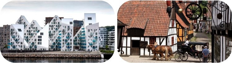De architectuur in Aarhus is een inspirerende mix van historische charme en innovatieve, moderne ontwerpen, met iconische gebouwen zoals het ARoS Kunstmuseum en het futuristische havengebied dat perfect de creatieve energie van de stad weerspiegelt.