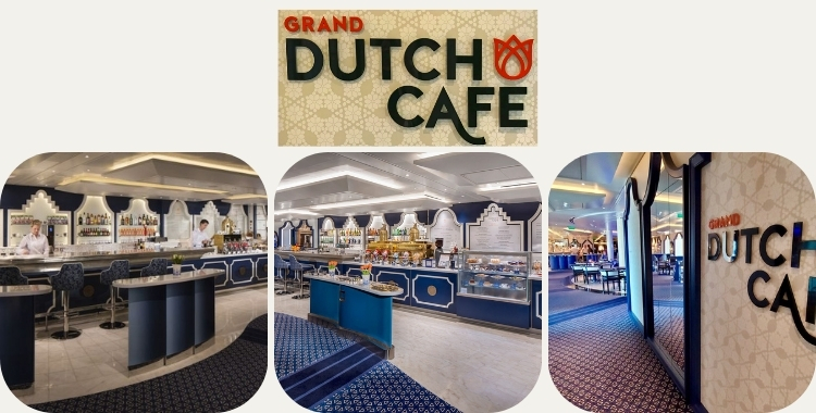 Een fantasierijke ruimte, geïnspireerd door Delftsblauw & Amsterdamse grachtenpanden, het "Grand Dutch Café " is de plaats aan boord om te genieten van uw favoriete koffie met een klassieke Nederlandse koffiekoek. Hier kan u ook genieten van een Heineken Pilsje of typische Nederlandse specialiteiten zoals poffertjes, bitterballen en erwtensoep. BARS