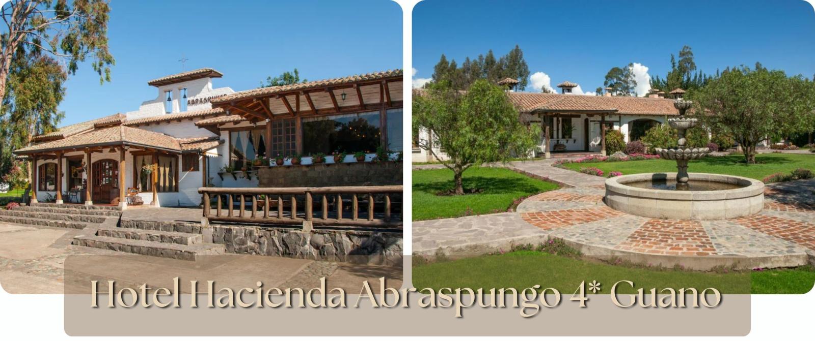 Een deel van de reis gaat verder in de Oriente (de naam die aan de Amazone regio is gegeven). Na het passeren van Puyo, de hoofdstad van de provincie gelegen aan de Pastaza rivier die uitmondt in de Amazone, beginnen we met de 'Ruta de las Cascadas' (Route van de Watervallen). We volgen de rivier en zien prachtige landschappen totdat we de ‘Pailon de Diablo’ bereiken, een van de meest indrukwekkende De Pailon del Diablo waterval is een natuurwonder aan de rand van het Amazone regenwoud, in het nevelwoud. Met een indrukwekkende hoogte van 80 meter stoot deze donderende waterval grote kolommen van kolkende wolken De waterval is majestueus en oogverblindend en wordt erkend als een van de grootste enkelvoudige watervallen in Ecuador. Hierna rijden we naar Riobamba. Overnachting in Hacienda Abraspungo.