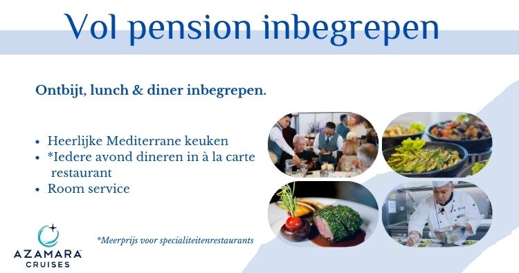 Verse ingrediënten, zorgvuldige bereiding en een gevarieerd menu. Azamara biedt zes unieke eetgelegenheden, inclusief roomservice. Of je nu houdt van haute cuisine of huiselijke gerechten, je kunt rekenen op dezelfde heerlijke kwaliteit.
