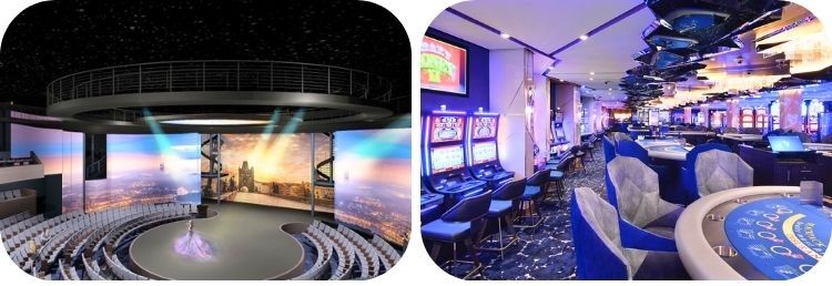 Probeer uw geluk in het stijlvolle casino of laat u betoveren door een spectaculaire show in het theater, waar wereldklasse entertainment u een onvergetelijke afsluiting van uw cruise biedt.