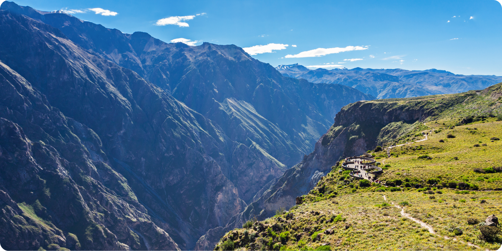 Zij produceren een van de fijnste en duurste wol ter wereld. We doorkruisen diverse adembenemende landschappen die van woestijnachtige vlaktes geleidelijk overgaan in de subtropische en weelderige Colca-vallei. We eindigen in het mooi Pozo del Cielo hotel. Diegene die er zin in hebben kunnen naar de deugddoende vulkanische thermische baden van Chivay gaan (facultatief).