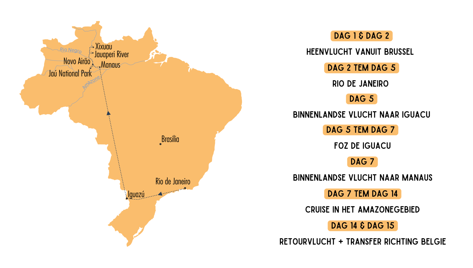 1 gouden raad. ( slechts 12 kajuiten op dit luxe Boutique schip beschikbaar ) De Blauwe Vogel heeft het hele schip afgehuurd, om U te laten genieten van prijzen buiten concurrentie. Kijk & vergelijk : deze reis is normaal gezien peperduur & eigenlijk onbetaalbaar. Maar omdat we het hele schip hebben gecharterd, kan U nu genieten van een totaalpakket met vliegreis, alle excursies, Rio, watervallen, binnenlandse vluchten, top programma & volpension allemaal inbegrepen. Enjoy !