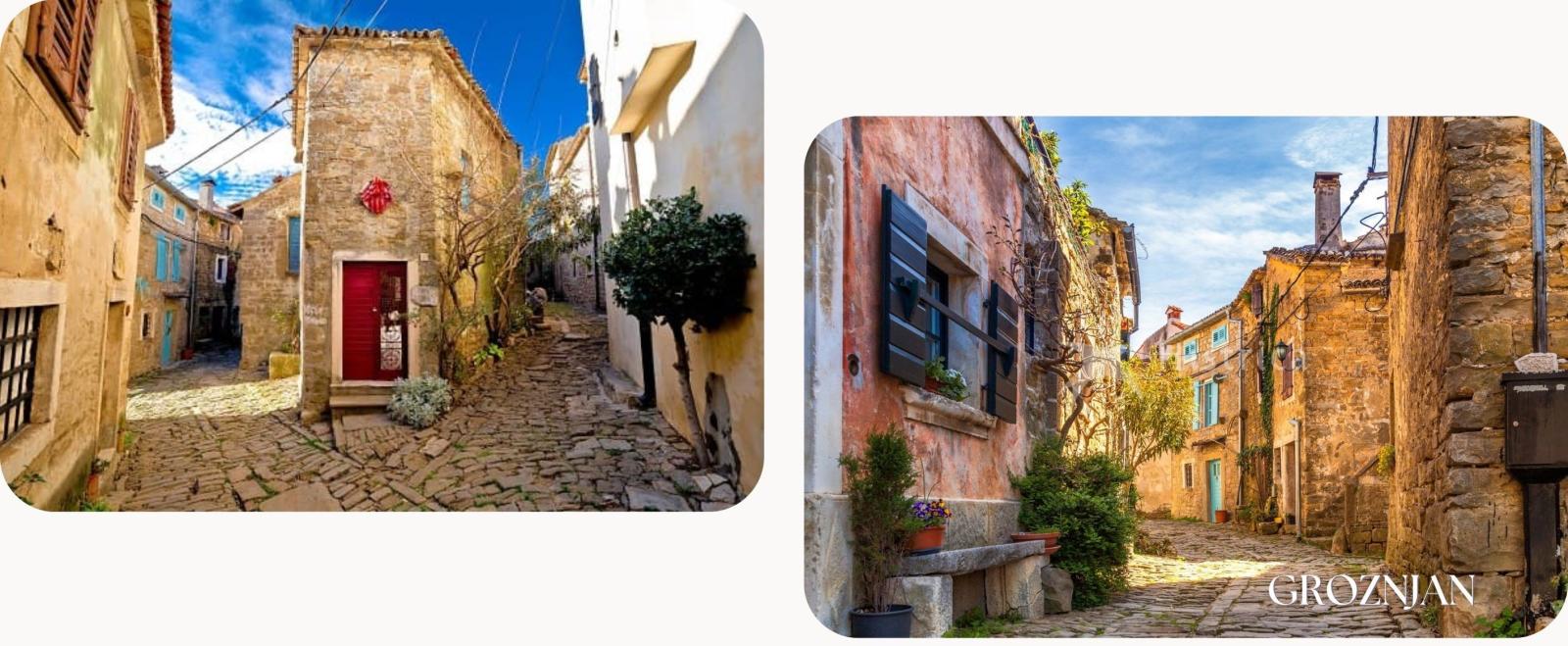 Na de brunch in het hotel vertrekken we via een prachtig landschap naar Grožnjan, een charmant kunstenaarsdorp. Hier hangt een vrolijke, creatieve sfeer tussen de kleine, beschaduwde pleintjes en de hobbelige, middeleeuwse straatjes. Na dit sfeervolle bezoek keren we terug naar Pore?.