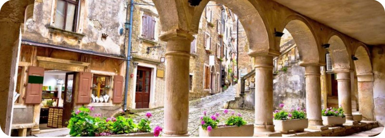 Tegen de middag rijden we naar een heel speciale plaats voor onze lunch. Daarna naar Motovun, een authentiek bewaard middeleeuws vestingstadje. We laten onze bus achter en wandelen door de grote stadspoort Motovun binnen. We wandelen over pleintjes met fonteinen en door stadspoorten. We gaan ook even langs de Stefanuskerk. Samen met de gids komen we ook meer te weten over de lekkere truffels in Istrië. Terugkeer naar Porec.
