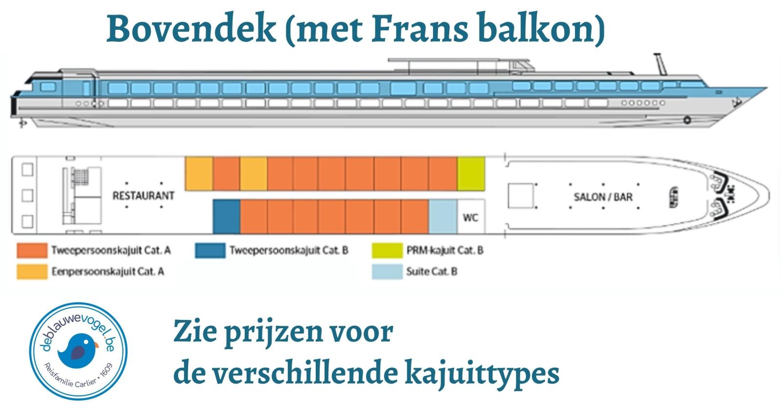 Bovendek 17 Dubbelkajuiten 3 Singlekajuiten (voor snelle beslissers) 1 Suitekajuit