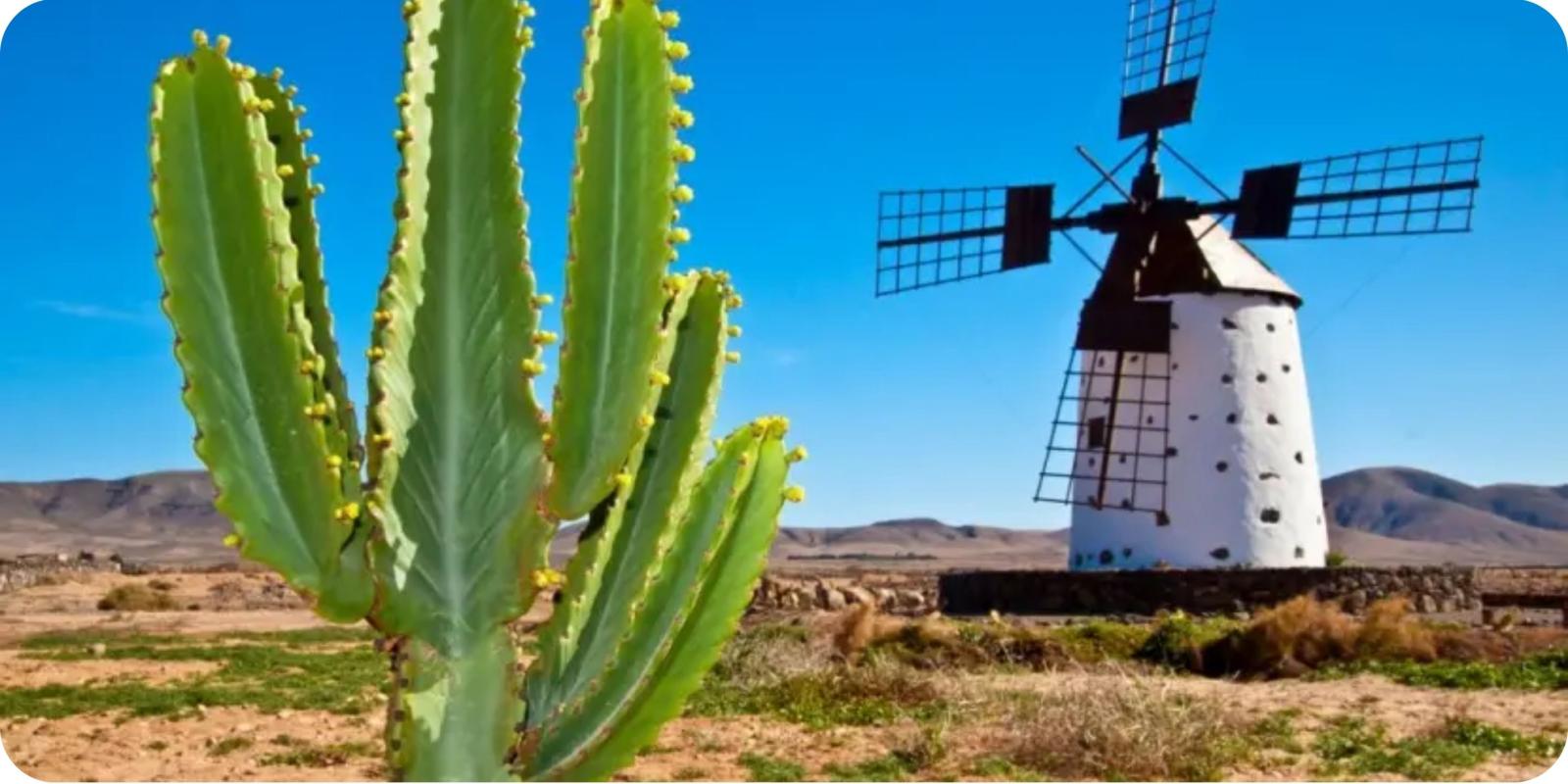 Fuerteventura is anders dan de andere Canarische eilanden. Het landschap is niet te vergelijken met de natuur op bijvoorbeeld Tenerife of Gran Canaria. Veel groen is er op dit eiland niet te vinden, maar daar tegenover vind je unieke bergen en heuvels. Het glooiende landschap van Fuerteventura is te danken aan vroegere lavastromen. De duinen aan de kust zijn dan weer gevormd door overgewaaid zand uit de Sahara. De helderblauwe zee zorgt voor een verademing tijdens de warme zomerdagen. Vooral in het noorden kun je een geschikt plekje uitzoeken op de prachtige brede zandstranden. Een bijzondere excursie is een trip naar Isla de Lobos, een eiland tussen Fuerteventura en Lanzarote. Dit eiland is één groot natuurreservaat met uiteenlopende landschappen. Het eiland telt ruim 100 plantensoorten waarvan sommigen alleen hier te vinden zijn. Na deze ontdekkingstocht, kun je nagenieten op een van de terrasjes van El Puertito.