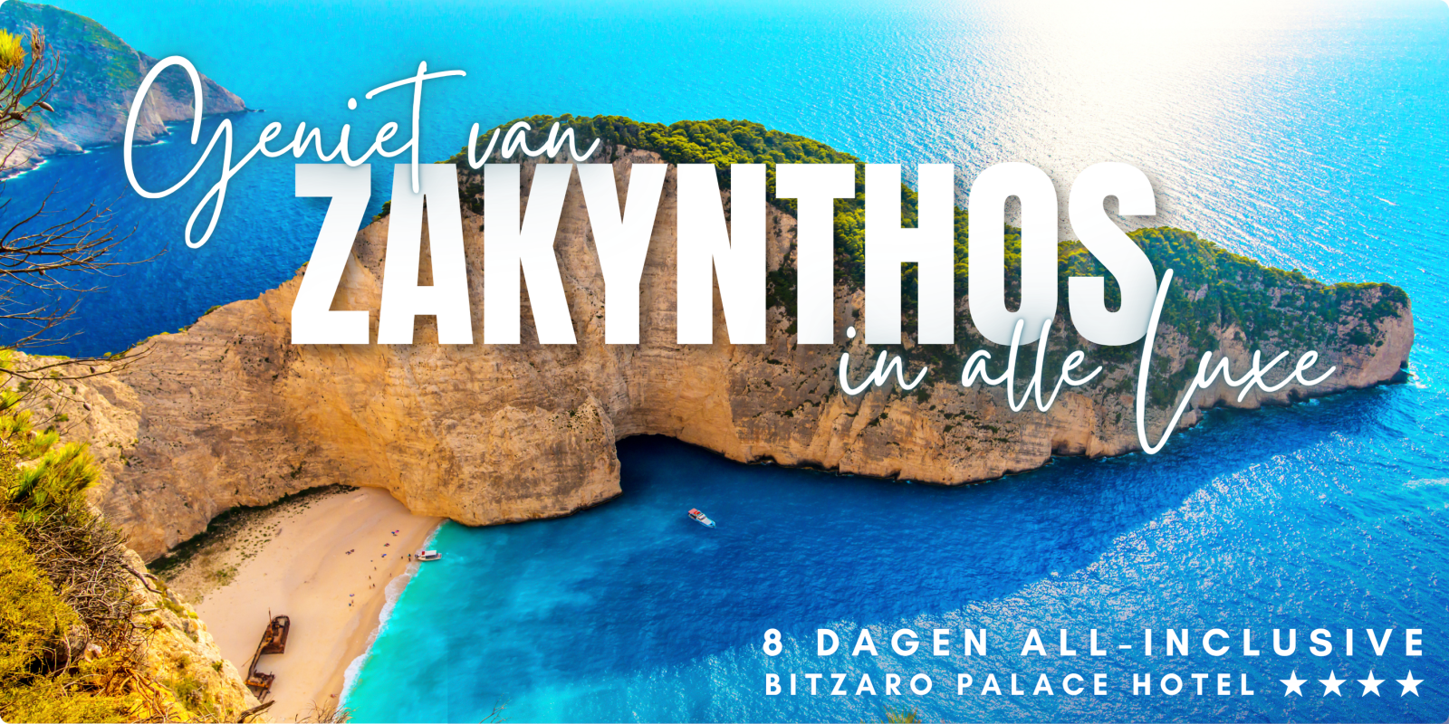 Dit wereldberoemde strand met zijn iconische scheepswrak, hoge witte kliffen en azuurblauwe zee