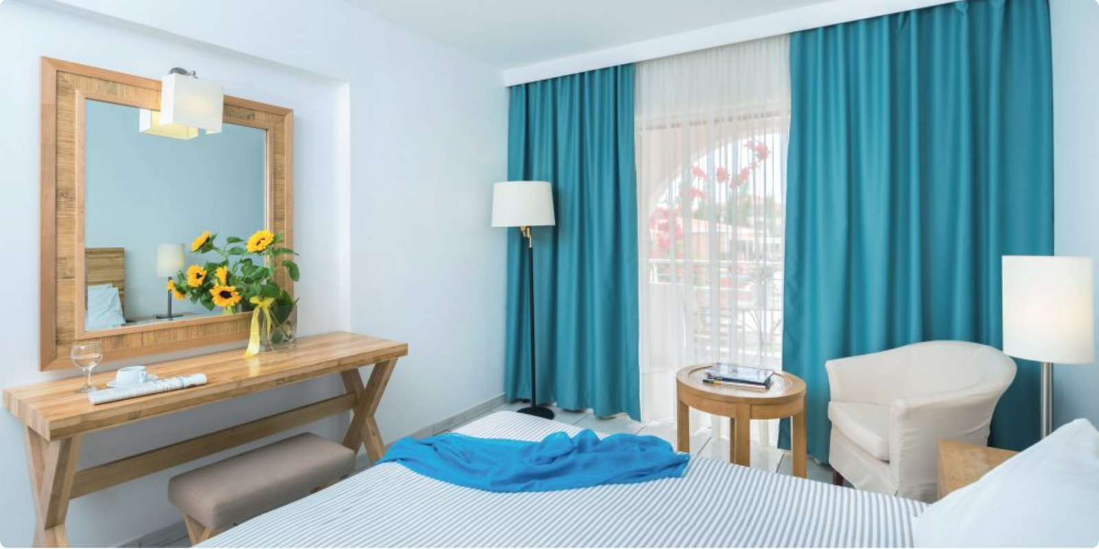 telefoon, wifi, satelliet-tv (flatscreen), koelkast, safe (betalend) en balkon of terras.