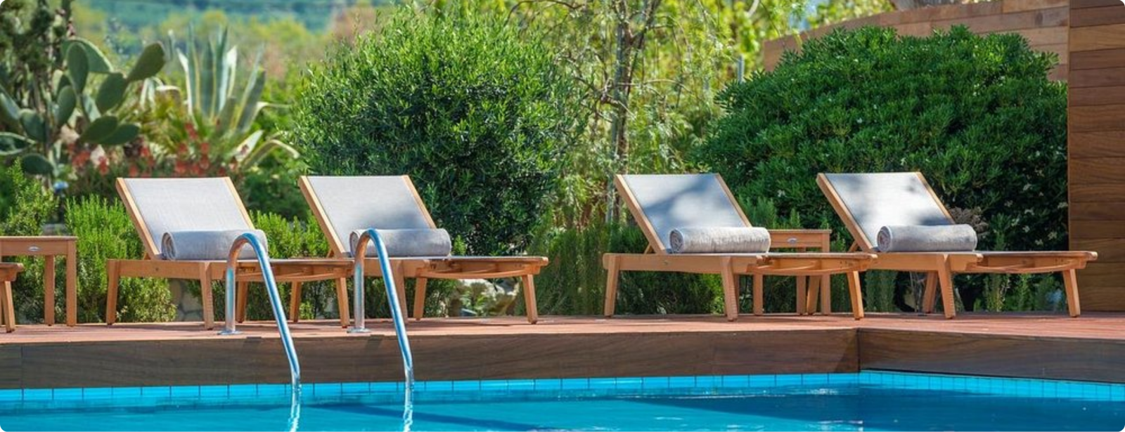 Gratis ligzetels & parasols aan het zwembad