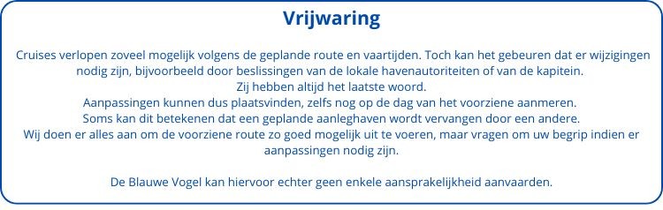 4 of 5 (afhankelijk van de vaarroute) prachtige dagen Graag meegaan = nu boeken! Beperkt aantal plaatsen aan deze voordeeltarieven