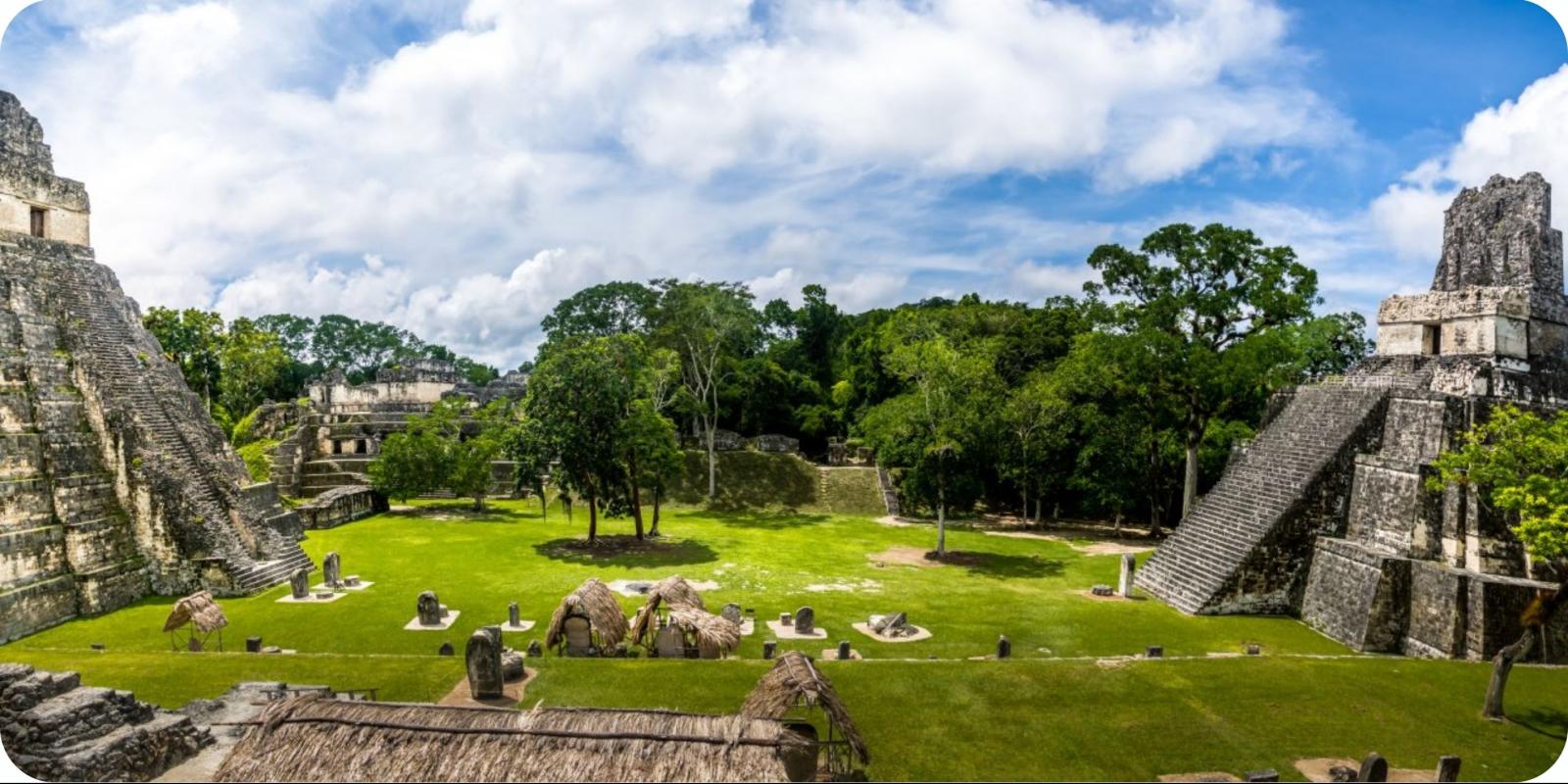 De archeologische site van Tikal, gelegen in het midden van een dikke jungle met enkele reusachtige bomen zoals de “Ceiba” of kapokboom en de “Sapote”. Deze prachtige site getuigt van de grootsheid van een beschaving die is verdwenen en waarschijnlijk al in de 7de eeuw voor Christus werd bewoond door de voorouders van de Maya's. De belangrijkste piramides zijn omgeven door monumenten en paleizen uit de klassieke tijd. Tikal telde ongeveer 100.000 inwoners op het hoogtepunt van zijn pracht. De site beslaat 175 km² en bestaat uit 10.000 structuren. Tussen de uitbundige vegetatie bevinden zich zelfs piramides van 70 meter hoog. We ontdekken tijdens het bezoek o.a. de Plaza Mayor, omlijst door twee van de meest spectaculaire piramides van de site maar ook de Tempel van de Grote Jaguar, met majestueuze proporties (45 meter hoog) die het graf van koning Ah Cacao huisvestte.