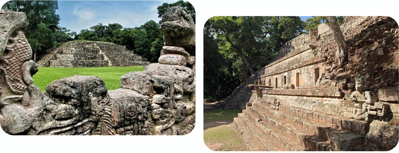 Honduras: net over de grens (onbekend voor de Maya’s) is er Copan. Pas ontdekt in 1570 wordt het beschouwd als een van de meest indrukwekkende steden van de oude Maya-beschaving. Soms zelfs vergeleken met Parijs of Alexandria voor de verfijning van de decoratieve kunst