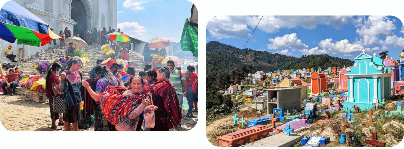 Chichicastenango waar de monnik Fransisco Jimenez de « Popol Vuh » ontdekte waar de mythische geschiedenis en migratie van de voorvaders van de Quichés Maya beschreven is. Het is in dit charmante dorp waar elke donderdag en zondag de beroemdste markt in heel Midden-Amerika plaatsvindt. Vrije tijd om dit dorp te ontdekken, om door de markt van duizend kleuren te kuieren en te genieten an de buitengewone sfeer van de grootste ambachtelijke markt in Midden-Amerika. Wandel door het dorp naar de Santo Tomas kerk, waar vrouwen voor de kerk staan met bloemen aan hun voeten. Vaak ziet men processies van de bewoners van de hooglanden die de christelijke en Mayariten mengen en zo trots hun Maya-identiteit opeisen. Bezoek aan een atelier waar ze de kostuums maken voor hun dansen en feesten. Hier wordt de dans van de verovering uitgevoerd. De mannen van de altiplano dansen, gemaskerd en versierd met ongelooflijk kleurrijke kleding, op de melodie van een trommel en een fluit.
