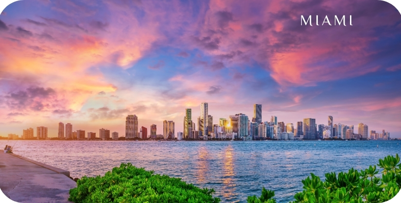 Miami, gelegen in de staat Florida, staat bekend om zijn levendige sfeer, prachtige stranden en bruisende cultuur. De stad combineert moderne wolkenkrabbers met tropische invloeden, waar de zon bijna altijd schijnt. Miami biedt een mix van Latin vibes, luxe winkelmogelijkheden, een spannend nachtleven en iconische plekken zoals South Beach en de Art Deco wijk