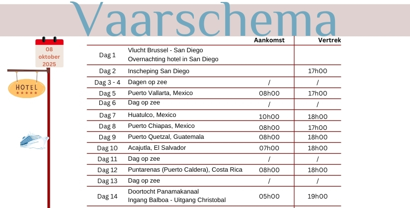 ! Disclaimer ! Deze disclaimer heeft betrekking op mogelijke wijzigingen in het geplande reisprogramma van de cruise die worden veroorzaakt door omstandigheden buiten onze controle. Hoewel we ons uiterste best doen om onze reisroutes consistent te handhaven, kunnen er situaties ontstaan waarin wijzigingen nodig zijn om de veiligheid, het comfort en het welzijn van onze passagiers, bemanning en het schip te waarborgen. Wijzigingen in de reisroute kunnen onder andere veroorzaakt worden door, maar zijn niet beperkt tot: - Onvoorziene weersomstandigheden - Technische problemen met het schip - Navigatiebeperkingen - Operationele vereisten - Bevelen van overheidsinstanties - Veiligheidsoverwegingen Wij begrijpen dat reizigers anticiperen op een specifieke reiservaring , we streven er dan ook naar om alternatieve routes of bestemmingen aan te bieden die nog steeds een aangename en onvergetelijke reiservaring bieden. Het is belangrijk op te merken dat, hoewel we deze disclaimer verstrekken, we ons inzetten voor de hoogst mogelijke klanttevredenheid en zullen samenwerken met onze passagiers om eventuele ongemakken als gevolg van routewijzigingen tot een minimum te beperken. Door deel te nemen aan onze cruise, erkennen passagiers dat routewijzigingen kunnen optreden en gaan ze akkoord met deze mogelijkheid zonder daarbij enige aansprakelijkheid tegenover "reiskantoor De Blauwe Vogel" te leggen. Voor verdere vragen over ons cruise programma en onze algemene voorwaarden kunt u contact met ons opnemen. |