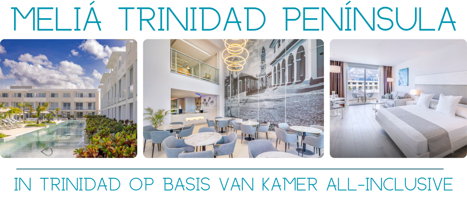 • Hotel Iberostar Selection La Habanna in Havana***** • Hotel La Union in Cienfuegos**** • Hotel Melia Trinidad in Peninsula***** • Hotel Paradisus Princesa Del Mar in Varadero***** Of Gelijkwaardig