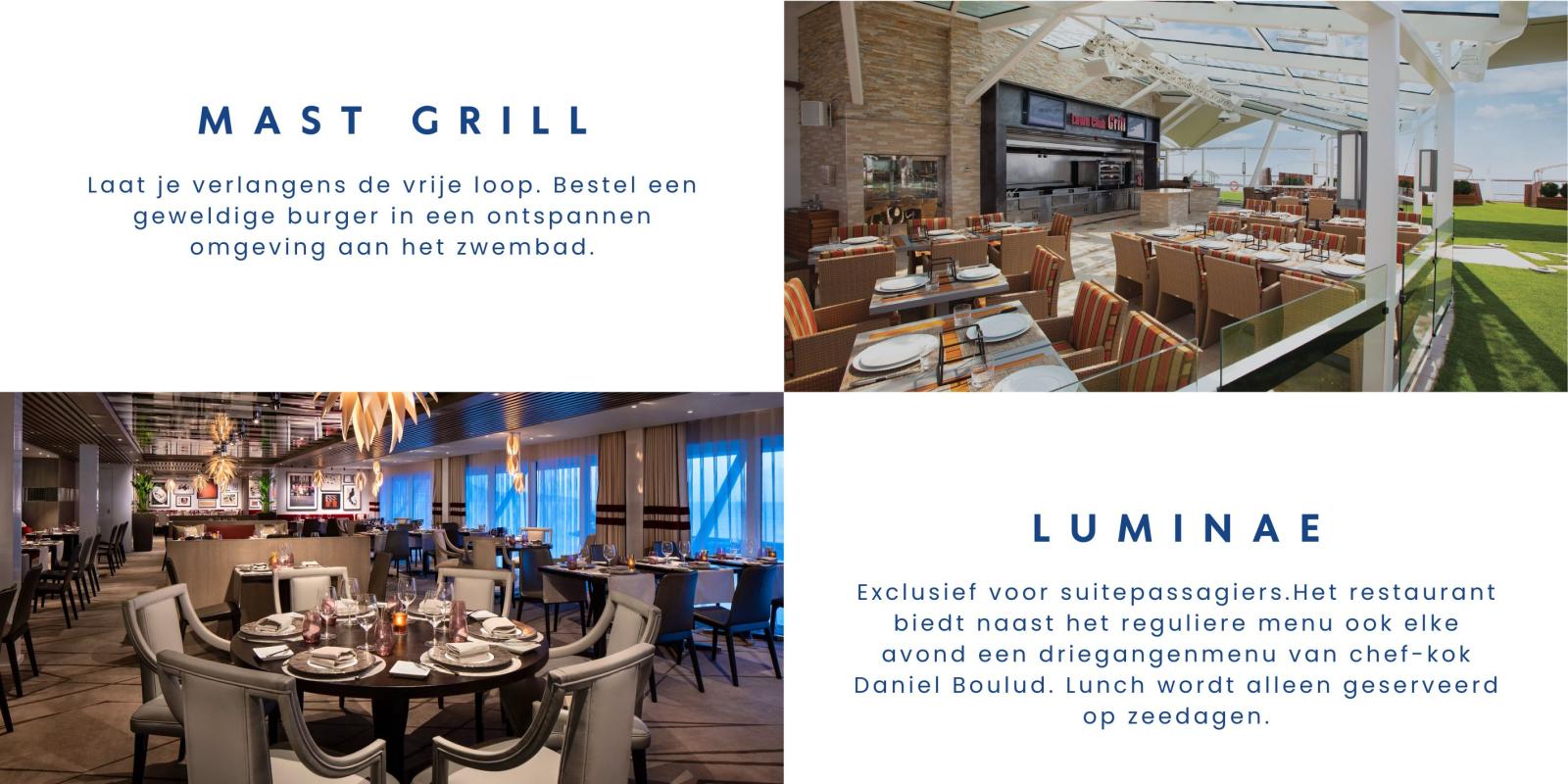 Voor wie zich extra culinair wil laten verwennen, zijn er diverse speciality dining-opties aan boord: