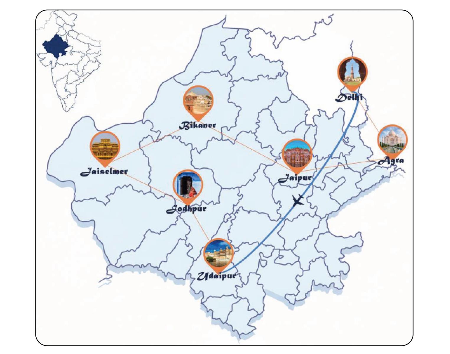Delhi - Udaipur –Ranakpur - Jodhpur- Thar woestijn- Jaiselmer- Bikaner – Jaipur- Agra