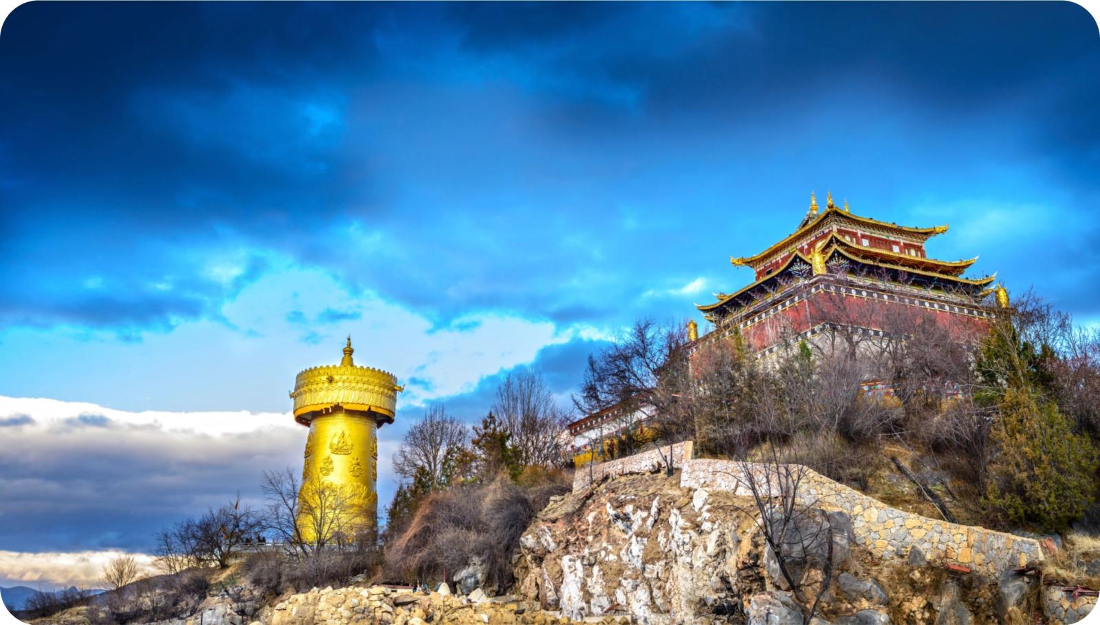 De Khamba branche van Tibetaanse bevolking, de kloosters met de slingers van gebedsvlaggetjes, de ruige omgeving van het hooggebergte met bergpassen en ravijnen geven aan dat dit een van de verste uithoeken van China is. Dit is het mythisch land van Shangrila.