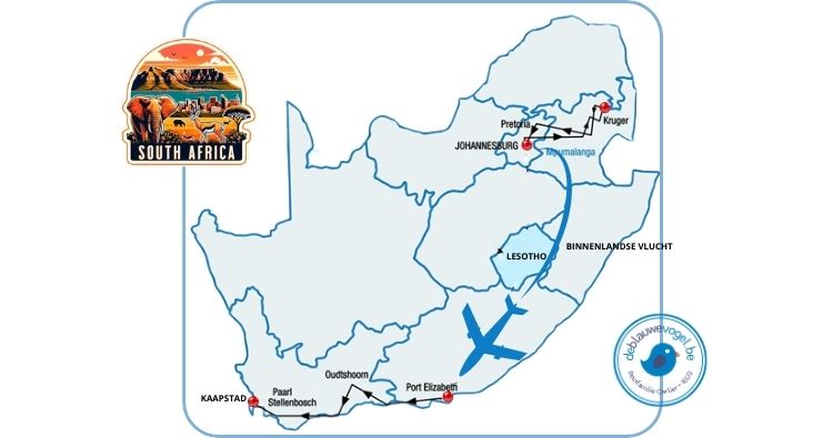 (altijd met 1 overstap - rechtstreekse vluchten vanuit België naar Zuid-Afrika bestaan niet)