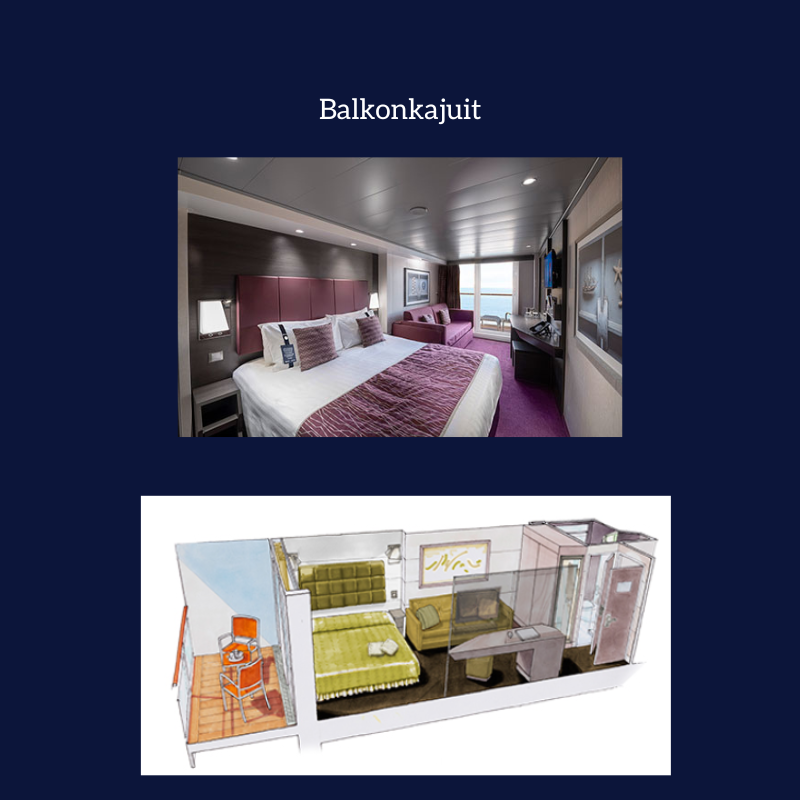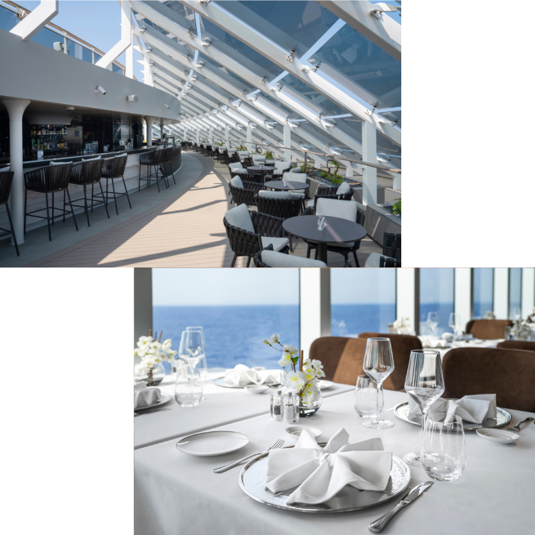 Geniet van het adembenemende uitzicht op zee vanaf het ruime dek, ontspan in de weelderige spa ofgeniet van de verschillende culinaire hoogstandjes in de diverse restaurants aan boord. Met een scala aanactiviteiten en entertainmentopties, zoals zwembaden, theatershows en winkelgalerijen, is er voor elk wat wils.