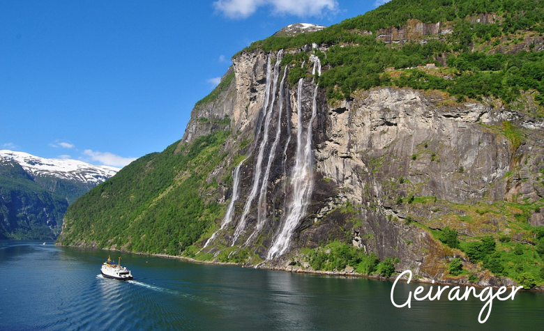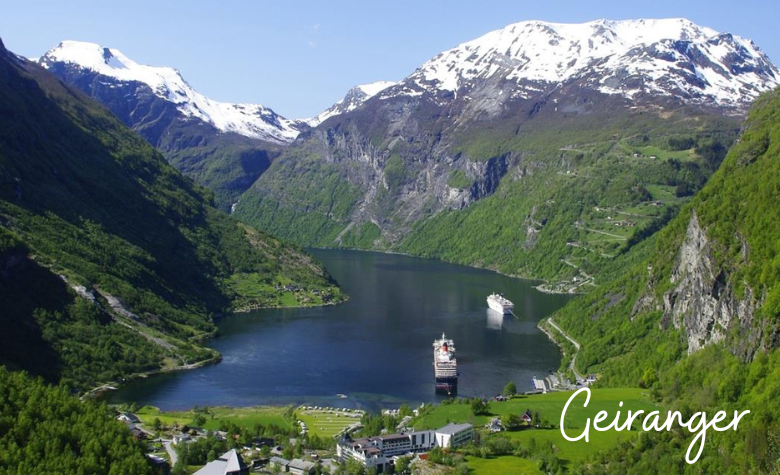 Geiranger is een betoverend dorpje gelegen aan de oevers van de gelijknamige fjord, omringd door steile bergpieken en weelderige groene bossen. Het is bekend om zijn adembenemende natuurlijke landschap, met majestueuze watervallen die van de steile kliffen naar beneden storten, zoals de beroemde Zeven Zusters en de Bruidssluier. Bezoekers kunnen genieten van spectaculaire uitzichten vanaf uitkijkpunten zoals de Ørnesvingen en de Flydalsjuvet, terwijl ze de serene schoonheid van deze UNESCO-werelderfgoedlocatie verkennen. Het dorp zelf heeft een charmante uitstraling, met traditionele houten huizen en gezellige cafés langs de kronkelende straatjes. Geiranger is een onvergetelijke bestemming die de natuurlijke pracht van Noorwegen op zijn best laat zien.