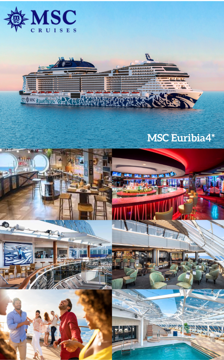 MSC Euribia is een prachtig cruiseschip dat je meeneemt op een onvergetelijke vakantie-ervaring. Met zijn moderne en luxueuze faciliteiten biedt het schip een perfecte mix van comfort en vermaak.